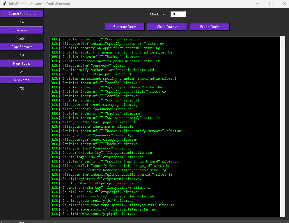JuicyDorker is a powerful, streamlined dork generation tool built with customization, clarity, and speed in mind.
